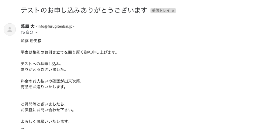 ④申し込みを受け付けると、メールが届きます。